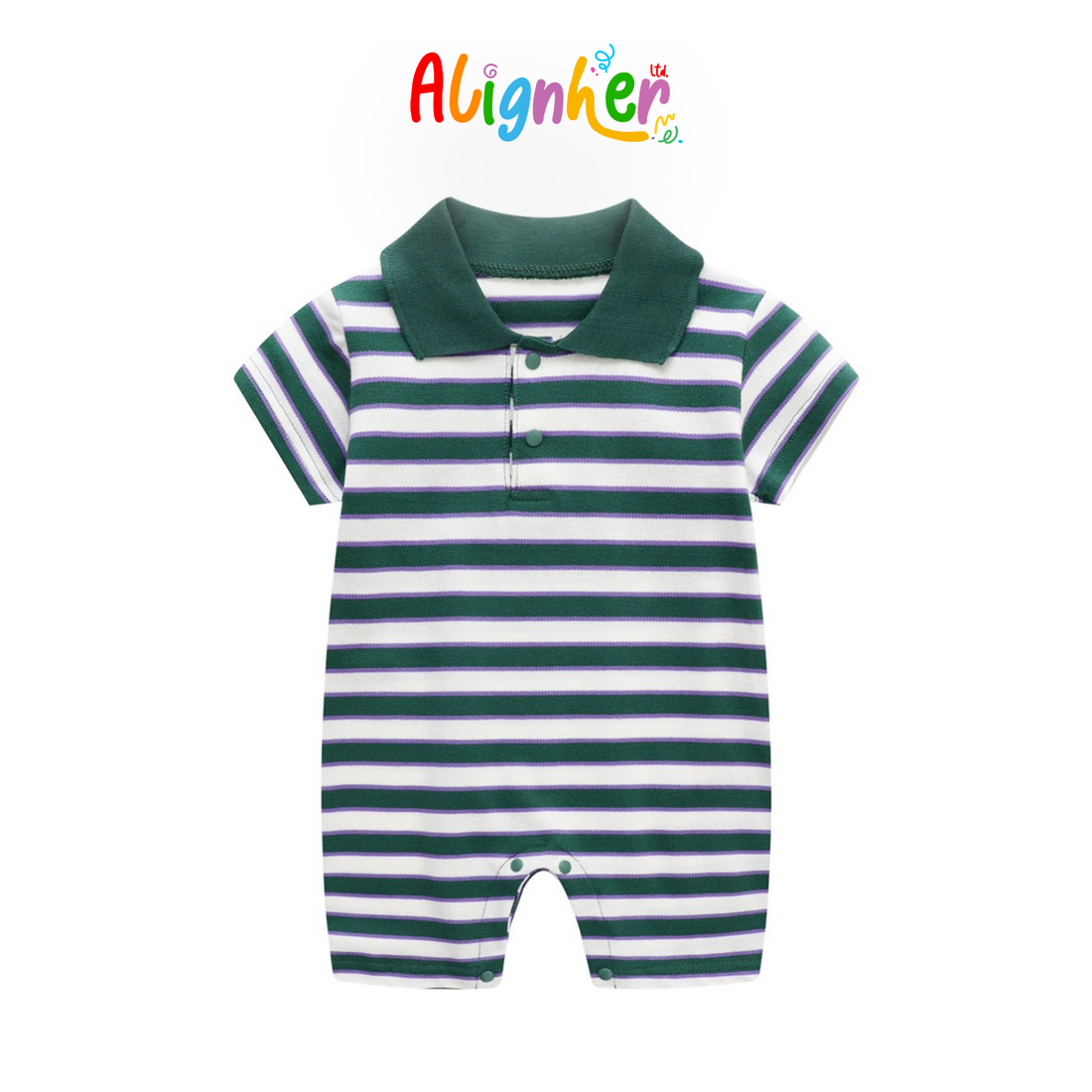 Baby Boy Striped Polo Romper – Short Sleeve Cotton Jumpsuit