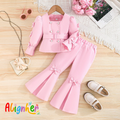 Girls Pink Flared Pants with Bow Detail – Stylish Bell Bottom Trousers